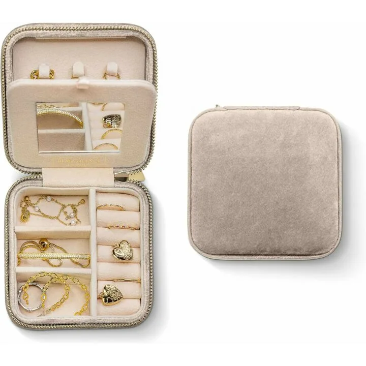 Show moreIf there's a woman in your life who loves jewelry, the Benevolence LA Plush Velvet Travel Jewelry Organizer Box is the perfect gift for her. Designed with elegance and practicality in mind, this jewelry box offers a luxurious velvet finish and a thoughtful layout to keep her precious items safe and organized. Beautifully crafted in the USA, this jewelry box is made from high-quality sage velvet for a soft and luxe feel. It comes with a secret earring compartment, a built-in compact mirror, and a gold-colored side zipper for a classic and stylish look.
