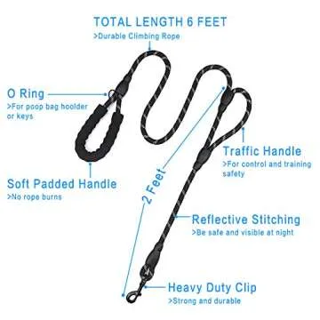 Plutus Pet Rope Dog Leash 6ft Long,Traffic Padded Two Handle,Heavy Duty,Reflective Double Handles Lead for Control Safety Training,Leashes for Large Dogs or Medium Dogs,Dual Handles Leads(Black)