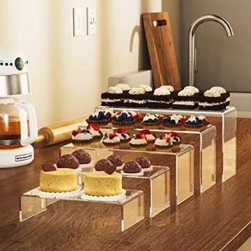 Show moreElevate your collection and display your favorite items with the PMMAZX Acrylic Display Risers. This exquisite set includes five acrylic display stands in various sizes, expertly crafted to enhance the presentation of everything from collectibles to cosmetics. Whether you're showcasing toys, figurines, skincare products, jewelry, or even cupcakes, these stands will effortlessly bring attention to your prized possessions.