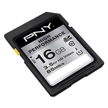 PNY 16GB High Performance Class 10 U1 SDHC Flash Memory Card - 85MB/s, Class 10, U1, Full HD, UHS-I, Full Size SD