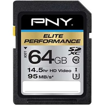 PNY 64GB Elite Performance Class 10 U3 SDXC Flash Memory Card - 95MB/s, Class 10, U3, 4K UHD, Full HD, UHS-I, Full Size SD