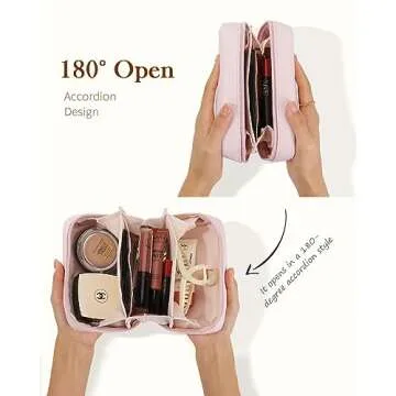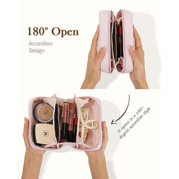 Pocmimut PU Leather Makeup Bag Small Travel Makeup Bag,Open Flat Small Makeup Bag for Purse,Purse Pouch,Small Makeup Pouch for Women(Pink)