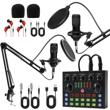 Podcast Equipment Bundle Kit For 2, Audio Interface with Voice Changer Condenser Microphones for DJ Mixer, All-in-One Recording Studio Equipment Perfect for Live Streaming, Singing, YouTube, Gaming