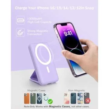 podoru for Magsafe Battery Pack, Foldable 10000mAh Magnetic Power Bank with USB-C Cable LED Display 22.5W PD Fast Charging Wireless Portable Charger for iPhone 16/15/14/13/12 Series-Purple