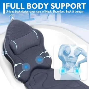 Show moreCreate a sanctuary of relaxation with the Poemland Luxury Thick Full Body Bath Pillows Mat & Cushion. Designed to transform your bathing experience, this exquisite bath pillow embraces your body with a soft, cushy comfort that provides unparalleled support for your neck, shoulders, and back. Made with premium 3D Air Mesh Technology, it not only feels luxurious but also stays breathable, ensuring you enjoy pure bliss while soaking in the tub. Whether you're unwinding after a long day or indulging in a spa-like retreat, this bath cushion guarantees to elevate your relaxation routine to a whole new level.