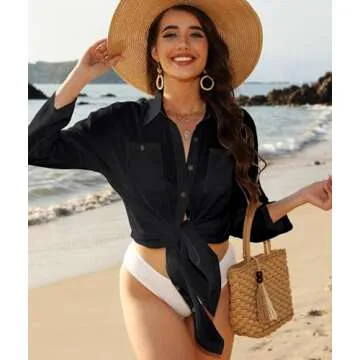 POGTMM Womens Bathing Suit Cover Ups Swimming Pool Bikini Swimsuit Coverup Button Down Shirt Beach Mini Dress (M, Black)