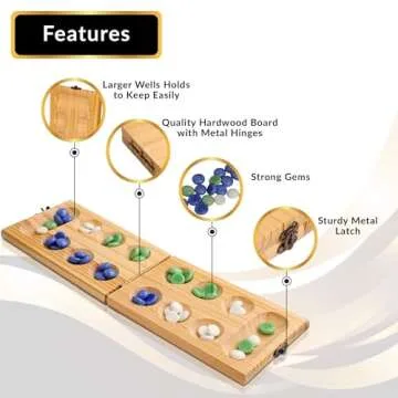 Point Games Solid Pine Mancala - Folding Board Game with Blue, Green, White Marbles- Portable Strategy Travel Game - Recommended Ages 6+