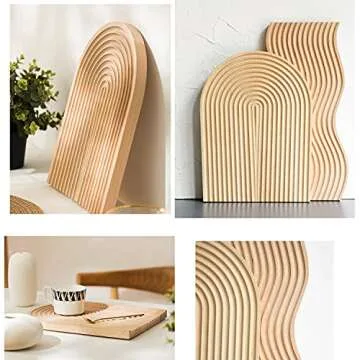 Poitemsic Creative Arch Bread Dessert Tray Wavy Wood Carving Board Cheese Fruit Cake Snacks Platters Serving Tray Photo Props Decoration