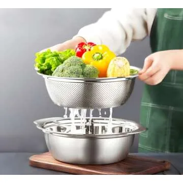 Introducing the POJORY 304 Stainless Steel Colander Set! This exceptional kitchen essential is masterfully crafted from high-quality 18/8, 304 food-grade stainless steel, ensuring durability and longevity in your kitchen. Whether you're draining pasta, rinsing vegetables, or washing fruits, this versatile colander has got you covered. Designed with a sleek mirror finish, it not only looks great but is also resistant to rust, corrosion, and wear, making it your perfect kitchen companion for...