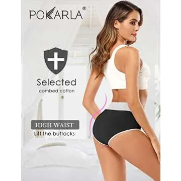POKARLA Womens Cotton Underwear High Waisted Full Coverage Underpants Soft Breathable Postpartum Panties Stretch Briefs Black