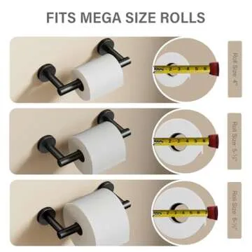 POKIM Black Toilet Paper Holder - Metal Bathroom Flexible Pivoting Tissue Handle on Wall Mounted, SUS 304 Stainless Steel Adjustable TP Large Mega Roll Holder for Wooden Cabinet Classic Matte