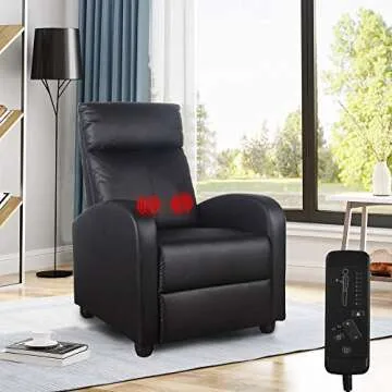 Polar Aurora Massage Recliner Chair PU Leather Vibratory Massage Function Theater Chair Ergonomic Lounge for Living Room(Black)
