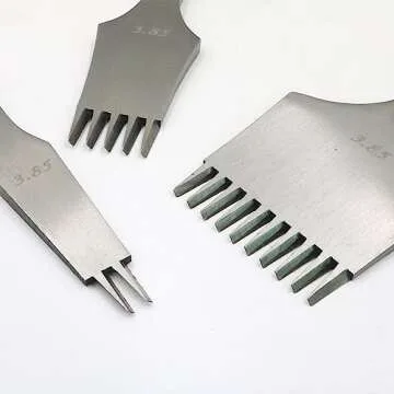 With an ergonomic handle designed for comfort, you can effortlessly work on your leather pieces without straining your hands. Each chisel features sharp pointed tips that guarantee clean and neat holes, ensuring your leather projects look immaculate. The included pressing plate assists in efficient usage, easily pulling the chisel out of the leather once the hole is made, enabling a smooth and hassle-free crafting experience.