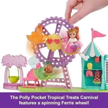 Step right up and immerse your child in a world of fun at the Polly Pocket Doll & Playset: Tropical Treats Carnival! This delightful playset brilliantly captures the spirit of a lively carnival, featuring a spinning Ferris wheel that is sure to spark joy and imagination. Designed for children aged 4 and up, it includes a charming 3-inch Polly Doll, a playful puppy, and 10 themed accessories that encourage endless storytelling and role-playing opportunities. The accessories are creatively...