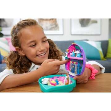 The compact also features the innovative Polly Stick technology, making it easy for children to place the dolls anywhere within the compact by sticking them to specially placed stickers. Each set comes with a sticker sheet for customization, allowing a personal touch. Its compact size and built-in strap mean it can be worn as a wristlet, making it perfect for on-the-go adventures, ensuring fun can accompany children wherever they venture!