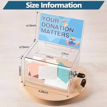 Polmart Tip Box/Suggestion/Business Card Collection Box with Lock (Built-in Sign Holder, Clear Color)