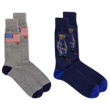 POLO RALPH LAUREN Men's 2-Pack Assorted RL Denim Bear Dress Socks for Comfort and Style