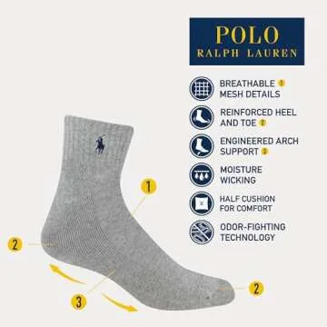 Show moreExperience comfort and style with the POLO RALPH LAUREN Men's Classic Sport Solid Socks 6 Pair Pack. Crafted with high-quality cotton, these socks provide a delightful softness that hugs your feet perfectly. The carefully crafted design ensures an ideal fit without leaving marks, making them a staple for everyday wear. Whether you're hitting the golf course or just lounging at home, these socks deliver on both comfort and style.