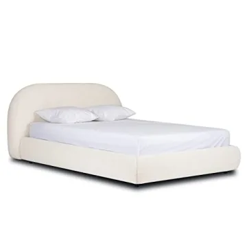 Show moreIntroducing the POLY & BARK Genoa Queen Size Bed in Crema White Boucle, a stunning blend of functionality and modern elegance. Crafted from high-quality, corner-blocked kiln-dried solid wood, this exquisite bed frame delivers exceptional durability and stability, making it a long-lasting addition to your home. The sleek black solid wood legs not only provide a modern aesthetic but also ensure reliable support for years to come. The beautifully upholstered frame, wrapped in soft, high-density foam, gives you the perfect backdrop for unwinding with a good book or binge-watching your favorite series. This bed frame is designed to be a statement piece that transforms your bedroom into a serene retreat.