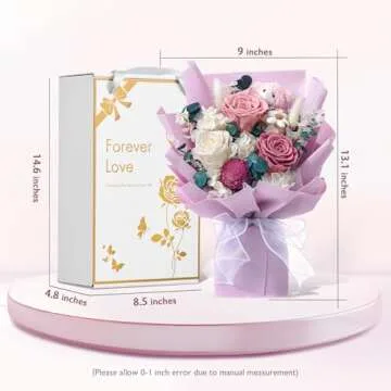 Polylove Forever Flower Bouquet Purple Flower Bouquet Preserved Roses with Bear Gift Box for Wife Mother Anniversary Birthday