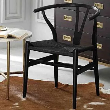 Polynices Wishbone Chair, Solid Wood Weave Armchairs Chair Mid-Century Y Shaped Backrest Dining Chairs Set of 2 Black.