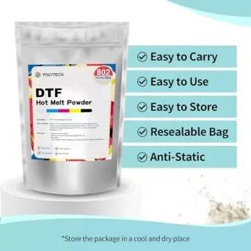 What sets this DTF powder apart is its ease of use; it works seamlessly with any DTF Transfer Film and is compatible with all DTF and DTG inkjet models including L1800, XP15000, ET8500, and ET8550. Forget about worrying if you'll achieve the desired outcome, as the Polytech DTF Powder has been crafted to deliver consistent results with every print.