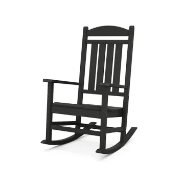 Show moreIntroducing the ultimate addition to your outdoor space: the POLYWOOD R100BL Presidential Rocking Chair in a classic black finish. This meticulously crafted rocking chair seamlessly blends timeless design with modern durability, making it the perfect choice for anyone looking to enhance their porch or patio. Proudly made in the USA, the chair embodies a unique combination of unmatched comfort, style, and resilience. With its contoured seat and spacious armrests, it allows you to indulge in leisurely afternoons spent reading, sipping coffee, or hosting gatherings with friends.