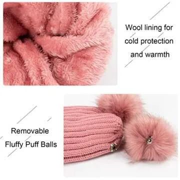 Unlike many other knit hats on the market, the Pom Poms Beanie Hat features a unique double-puff design that not only sets it apart in style but also enhances its cold-weather functionality. Other brands may use thinner materials that fail to keep you warm, while this beanie is crafted with a fleeced lining that guarantees protection against harsh winds. Plus, the removable pom poms add versatility that many compete brands lack—offering you the option to customize your look based on your outfit or mood!