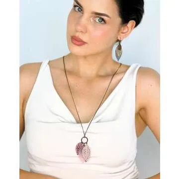 POMINA Chocolate Gold Silver Two Tone Filigree Fall Leaf Necklace Fashion Statement Chic Sweater Chain Long Necklace for Women (Worn Choco Gold)