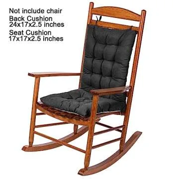 POMIU Rocking Chair Cushion, Chair Cushions, Premium Tufted Back and Seat Cushion Non Skid Slip, Chair Pads for Indoor Home, Kitchen, Desk Chair, Dining Chairs (Black, Fabric 1)