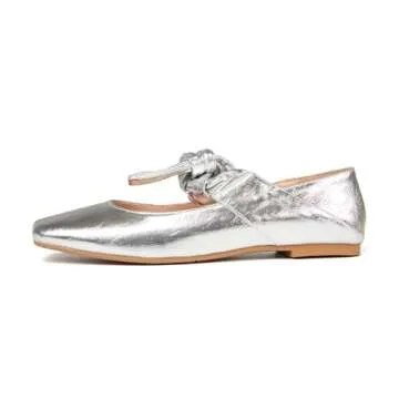 Pomoxikn Silver Mary Jane for Women Square Toe Mary Jane Pumps Bow Knots Ballet Flats for Women Designer Flats Slip On Dress Ballerina Shoes. -9