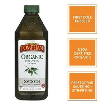 Pompeian USDA Organic Smooth Extra Virgin Olive Oil, First Cold Pressed, Smooth, Delicate Flavor, Perfect for Sautéing & Stir-Frying, 48 FL. OZ.
