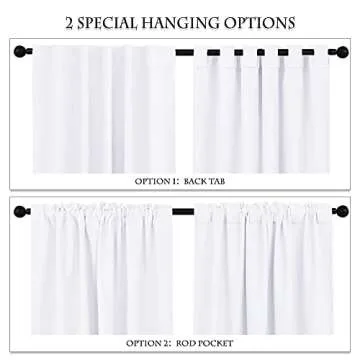 PONY DANCE White Window Curtains - Short Drapes Light Block Drapes with Back Tabs & Rod Pocket Design Thermal Insulated Panels for Decoration, 52 W x 45 L, Pure White, 2 Pieces
