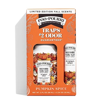 Show moreIntroducing the delightful and enchanting Poo-Pourri Toilet Spray - Pumpkin Spice Assortment, an essential part of your autumn ritual! This luxurious toilet spray features a captivating blend of pumpkin, cardamom, and cinnamon essential oils, transforming an uncomfortable situation into a comforting escape. Whether you are enjoying the crisp fall air or cozying up indoors, this spray captures the spirit of the season in every spritz, making each bathroom visit an experience of joy rather than anxiety.