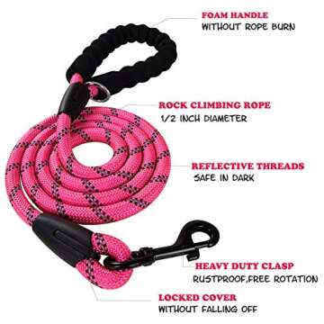 Show moreExperience ultimate control and comfort while walking your furry friend with the Poohoo 2 Pack Dog Leashes. Designed for medium to large dogs, these 5-foot heavy-duty leashes offer exceptional durability paired with a stylish touch in sleek black and vibrant pink colors. The comfortable padded handle ensures a secure grip, preventing strain on your hands during long walks. Included in the package is a convenient bag dispenser for easy clean-up and a specialized pet grooming glove that promotes bonding with your pet while keeping their coat healthy and shiny.