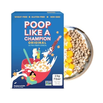 Say goodbye to digestive discomfort and embrace the satisfying crunch of Poop Like A Champion Ultra High Fiber Cereal. Start your journey toward a happier gut and enjoy the comforting knowledge that you are making a beneficial choice for your health!