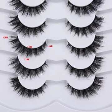 Pooplunch False Eyelashes Cat Eye Lashes Natural Short 8D Fluffy Wispy Faux Mink Lashes Wispies Fake Eyelashes 7 Pairs Multipack