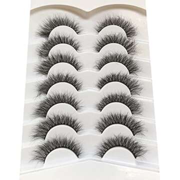 Pooplunch False Eyelashes Cat Eye Wispy Fairy Lashes Fluffy Natural Short Faux Mink Fake Eyelash 7 Pairs Pack