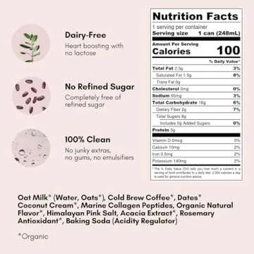 What sets our lattes apart is the infusion of sustainably sourced marine collagen, paired with a mouth-watering vanilla flavor that not only tantalizes your taste buds but supports your glowing skin, hair, and nails. With our clean ingredients, you can enjoy your coffee guilt-free. Our oat milk lattes contain pure and simple components—absolutely no fillers, emulsifiers, or additives, letting you indulge in a beverage that's as wholesome as it is delicious.