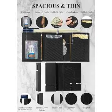 Pop Up Wallet for Men - Stylish RFID Blocking Money Clip Carbon Fiber Wallet