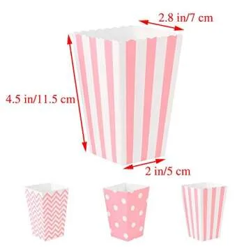 Popcorn Boxes Cardboard Candy Boxes Container Polka Dot Stripe Chevron Ripple,For Birthday, Bridal and Baby Shower,Carnival/Graduation/Party/Movie/Fiesta,Dessert Tables Wedding Party Supplies 36pcs