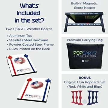 Show more If you’re in search of an innovative outdoor game that brings people together, look no further than the incredible Popdarts set! This remarkably crafted game combines the excitement of skill-based throwing with the joy of friendly competition. The set features two USA Official Tournament Boards, a premium carrying bag, and a unique built-in magnetic scorekeeper, ensuring you'll be well-equipped to enjoy hours of entertainment. With Original Popdarts included (3 Blue, 3 Red, and 1 White Target Piece), you can easily set up and dive into the action!