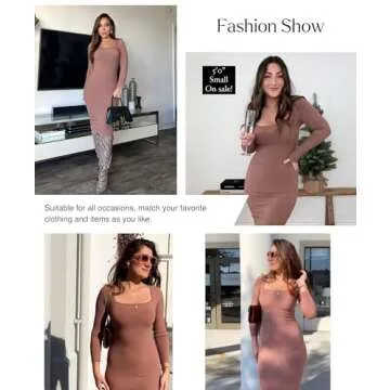 Popilush Party Dress Long Sleeve Bodycon Midi Dresses Shapewear Tummy Control Brown Club Night Out Built-in Bra