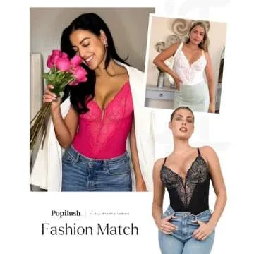 Popilush Shapewear Bodysuits for Women V Neck Sleeveless Lace Corset Tops Tummy Control Body Shaper Black M