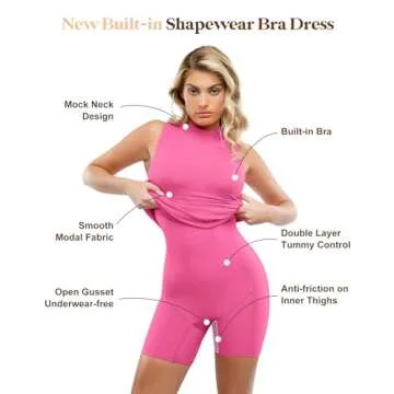 Popilush Shapewear Dress Midi Bodycon - Mock Neck Built in Shapewear Bra 9 in 1 Sleeveless Slip Dress for Women Pink