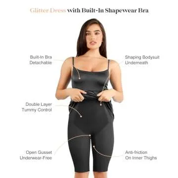 Show more Introducing the ultimate blend of style and comfort with this breathtaking bodycon dress from the renowned brand Popilush. This isn't just any dress, but a masterpiece designed with built-in shapewear that effortlessly sculpts your silhouette while enhancing your natural curves. With a focus on technical innovation, the dress smooths your abdomen and accentuates the thigh contour, ensuring you feel confident and fabulous wherever you go. The non-compressive butt design specifically highlights the beautiful lines of your hips and waist, giving you that coveted bubble butt effect. Not only does it support your figure, but the detachable cups also offer versatile styling options that cater to your every need.