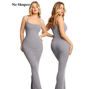 Popilush The Shapewear Dress for Women Built in Bra Maxi Bodycon Spaghetti Strap Dresses Grey