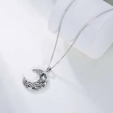 POPKIMI Christmas Gifts for Women Sterling Silver Wolf Necklace Wolf Jewelry Crescent Howling Wolf Pendant Necklace Jewelry for Wolf Lover Sister Mom Friend Birthday Gift (Celtic Wolf)