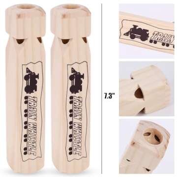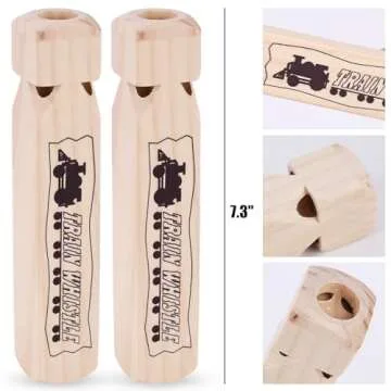 Show more Immerse your little ones in the enchanting world of trains with our Super Value Pack Wooden Train Whistles. Each set includes 2 exquisitely crafted wooden whistles, designed to bring joy and excitement to children's playtime. Made from premium wood, these whistles are not only aesthetically pleasing but also boast superior craftsmanship. Every whistle is meticulously sanded to perfection, ensuring a smooth finish that feels good in tiny hands.