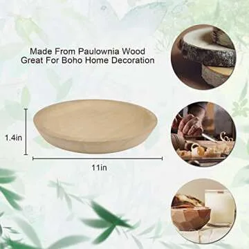 POPRHINO Wooden Bowl Decorative Trays for Home Décor, 11" Wide Farmhouse Decorative Wood Bowl Snack Fruit Serving Bowl Kitchen Dining and More